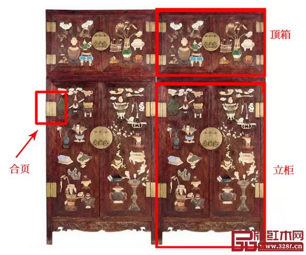 由于柜子一般成对组合,所以每对柜子立柜、顶箱各两件,共计四件,叫“四件柜”。